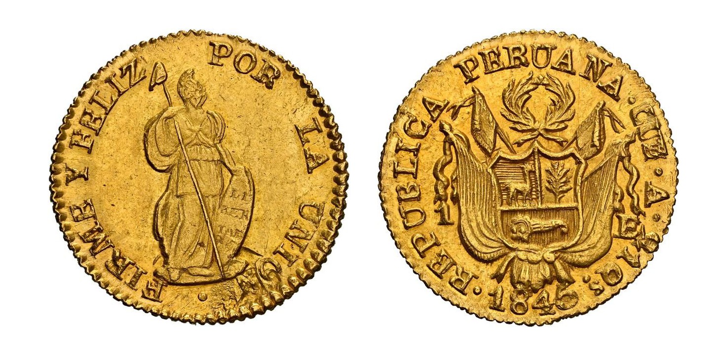 1 escudo, 1845, Cuzco Mint (uncirculated NGC-62)